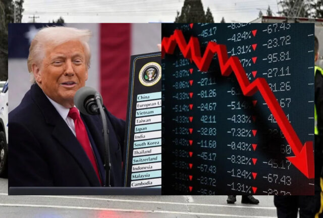 डॉउ जोन्स इंडस्ट्रियल एवरेज 2,231.07 अंक गिरकर 38,314.86 पर आ गया, जो 4 दिसंबर के रिकॉर्ड बंद स्तर 45,014.04 से सुधार दिखाता है. इस बीच, रॉयटर्स के अनुसार, एसएंडपी 500 322.44 अंक गिरकर 5,074.08 पर आ गया, जो 11 महीनों में इसका सबसे निचला स्तर है.