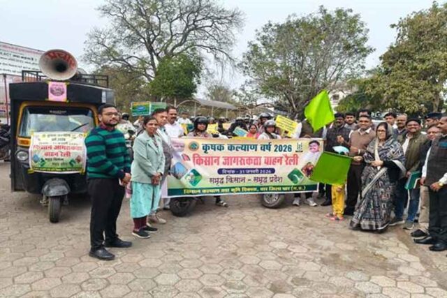 राज्य शासन द्वारा वर्ष 2026 को कृषक कल्याण वर्ष के रूप में मनाया जा रहा है। इसके लिए किसान कल्याण एवं कृषि विकास विभाग द्वारा विभिन्न गतिविधियों का आयोजन किया जा रहा है। प्रदेश में वाहन रैली के माध्यम से किसानों को खेती की नवीन तकनीकों को अपनाकर फसलों का उत्पादन बढ़ाने के लिए जागरूक किया गया। इसके तहत विभिन्न जिलों में वाहन रैली आयोजित की गईं।