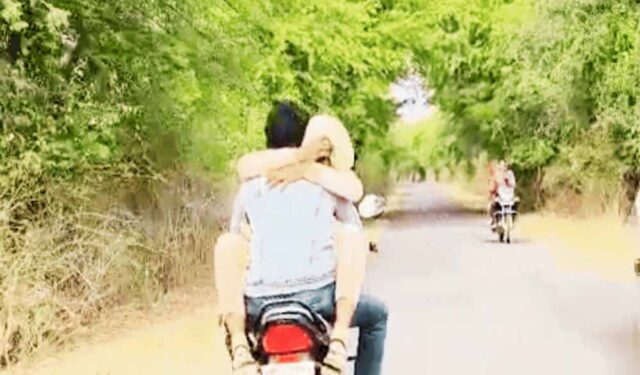 वीडियो जरुआखेड़ा–जलंधर रोड का है, जहां किसी ने अतरंगी जोड़े को अजीबोगरीब मुद्रा में बाइक राइड करते हुए कैमरे में कैद कर लिया. वीडियो में देखा जा सकता है कि युवक ने युवती को आगे उल्टा बैठाकर बाइक चला रहा है. युवती ने अपना मुंह कपड़े से ढक रखा है, जिससे उसकी पहचान सार्वजनिक हो सके.