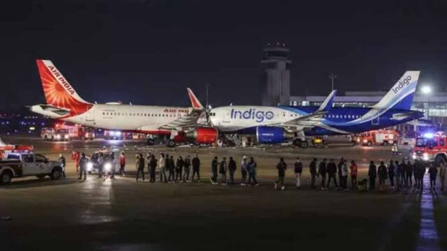 वहीं, इंडिगो के प्रवक्ता ने कहा कि हैदराबाद से मुंबई आ रही उड़ान 6ई791 के पंख का किनारा उतरने के बाद एक अन्य विमानन कंपनी के विमान से संपर्क में आ गया. इसके अलावा, नागरिक उड्डयन मंत्रालय के प्रवक्ता ने बताया कि नागर विमानन महानिदेशालय (डीजीसीए) की एक टीम मौके पर मौजूद है और दोनों विमानों को जांच के लिए वापस उनके स्थान पर ले जाया गया.
