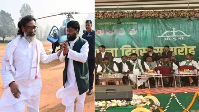 रांची से धनबाद पहुंचने पर मुख्यमंत्री का धनबाद हवाईपट्टी पर स्वागत किया गया। मुख्यमंत्री के साथ मंत्री हफीजुल हसन भी धनबाद पहुंचे थे। झारखंड मुक्ति मोर्चा का स्थापना दिवस समारोह इस बार भव्य तरीके से मनाया जाएगा। धनबाद स्थित गोल्फ मैदान में विशाल और आकर्षक पंडाल तैयार किया जा रहा है, जहां करीब 5 हजार से अधिक लोगों के बैठने की व्यवस्था की गई है। समारोह की तैयारियों को लेकर बीते मंगलवार को गोल्फ मैदान में झामुमो जिला कमेटी की एक अहम बैठक आयोजित की गई। बैठक का नेतृत्व सचेतक सह टुंडी विधायक मथुरा प्रसाद महतो ने किया। बैठक में पार्टी समर्थित प्रत्याशी चंद्रशेखर अग्रवाल, जिलाध्यक्ष लखी सोरेन, जिला सचिव मन्नू आलम समेत कई नेता और कार्यकर्ता मौजूद रहे।